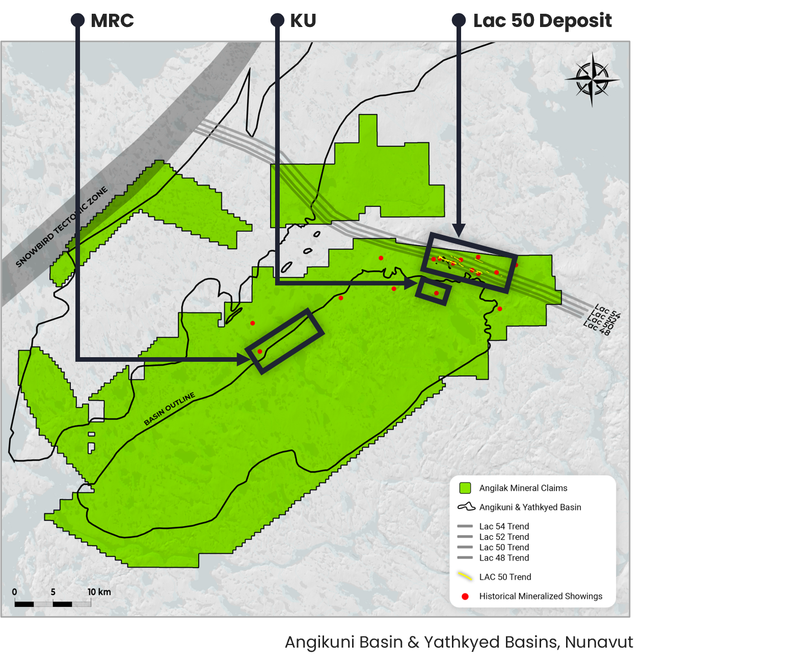 Angilak carries the risks common to exploration-stage assets, several of which are material enough to warrant specific identification. The project has no NI 43-101 compliant MRE. The Lac 50 Exploration Target is an internal estimate with no regulatory standing and cannot be used to calculate project economics. The 5 uranium showings identified in 2025 have each been tested by limited drilling - in the case of RIB North, by a single hole. Until multiple holes define the geometry of these systems, the grade and width of any single intercept cannot be extrapolated into a resource framework.