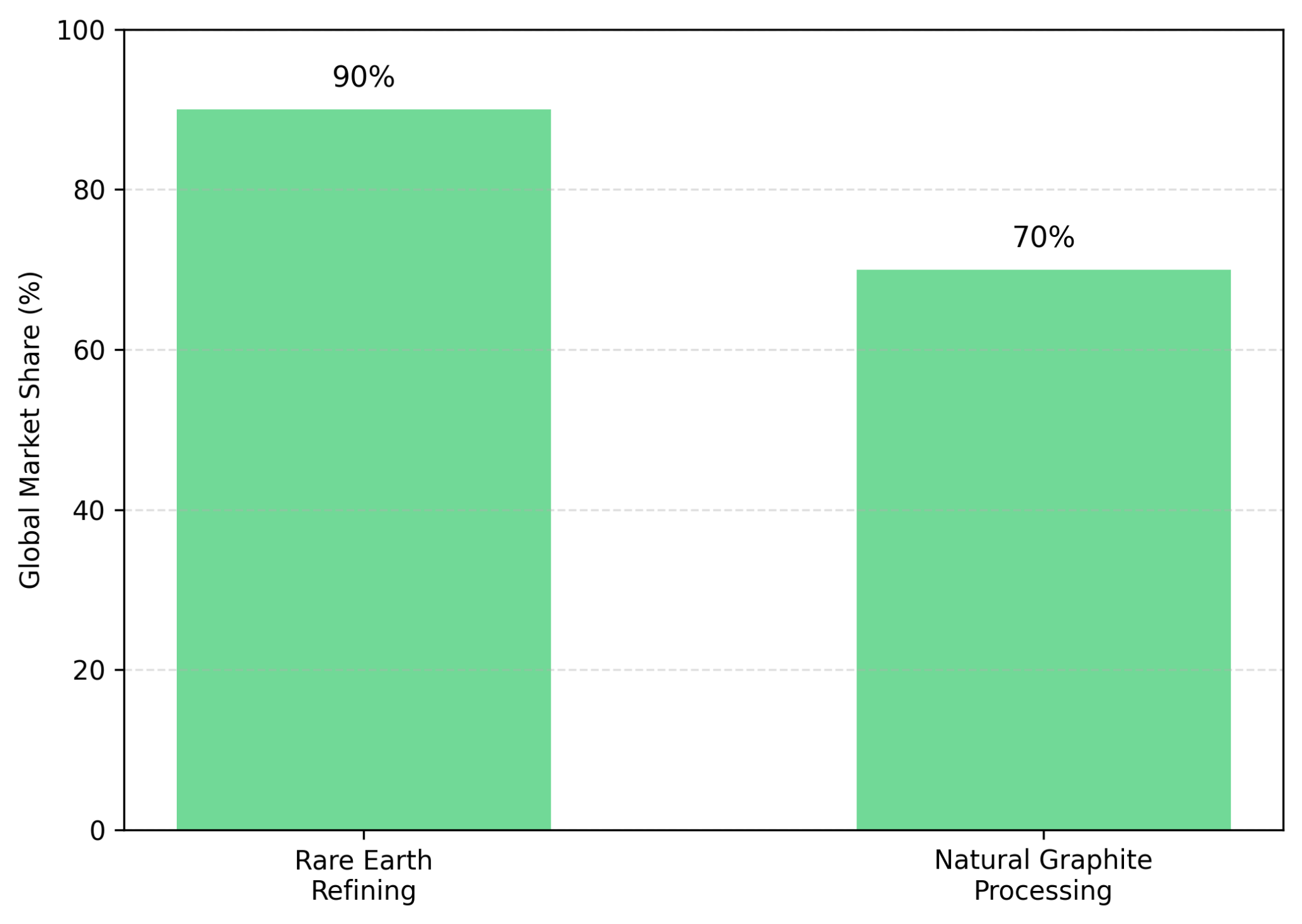 - China retains approximately 90% of global rare earth refining capacity and approximately 70% of natural graphite processing capacity per the International Energy Agency 2024 Critical Minerals Outlook, concentrating supply chain risk for Western original equipment manufacturers.