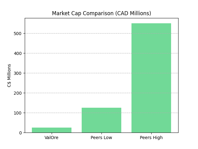 ValOre has a market cap of ~C$26 million, well below peers at C$126–550 million, and is backed by Discovery Group, which has raised over C$1 billion historically. About 55% insider and aligned ownership supports long-term alignment and reduces agency risk.