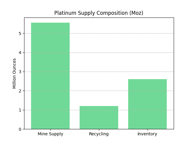 - Mine supply remains inelastic due to the deep, capital-intensive nature of underground platinum group metal (PGM) operations, with recycling the only near-term responsive source of incremental supply.