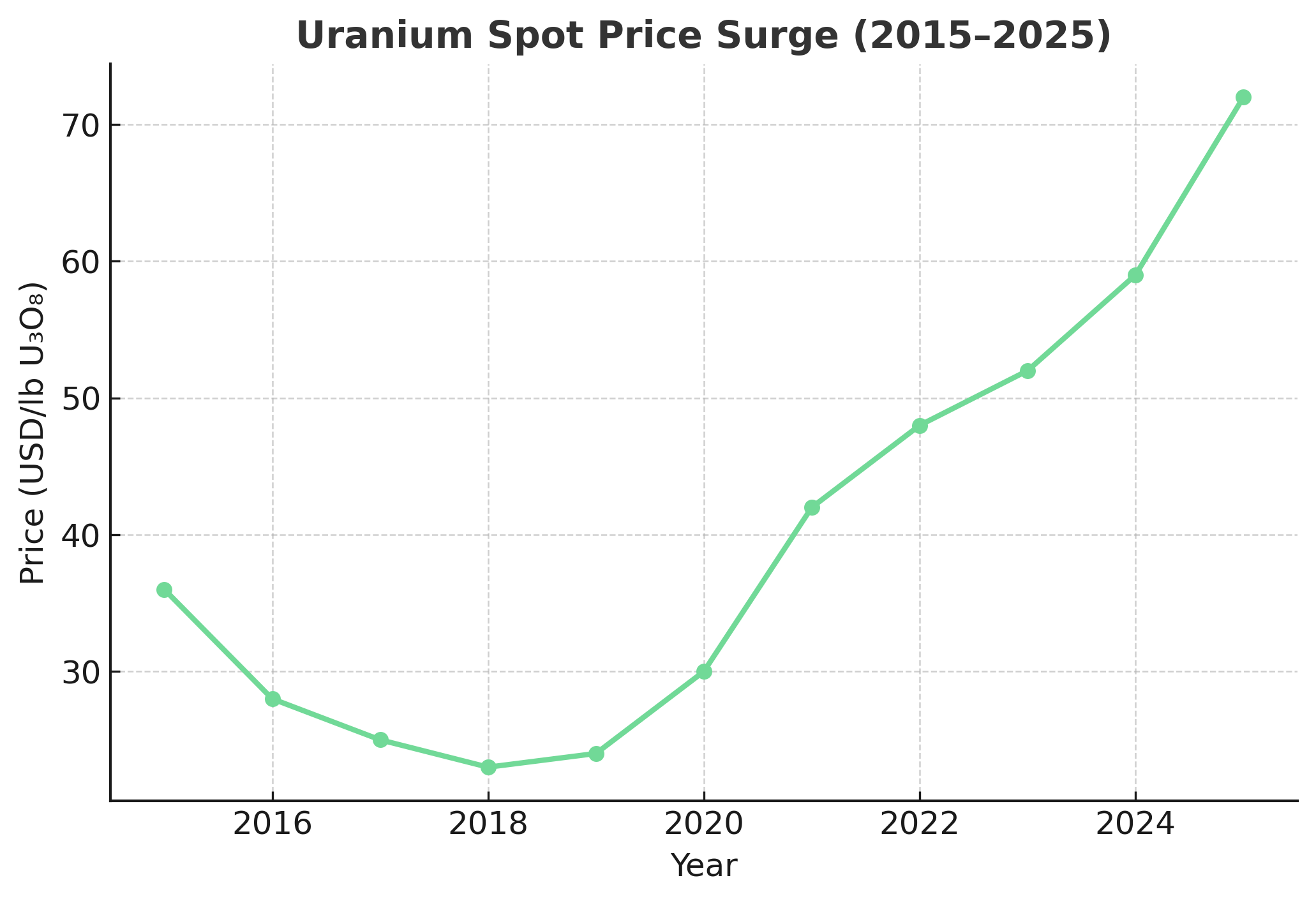 Uranium market surges to $72/lb as supply constraints meet rising nuclear demand. Critical infrastructure bottlenecks and high-grade discoveries reshape investment landscape.