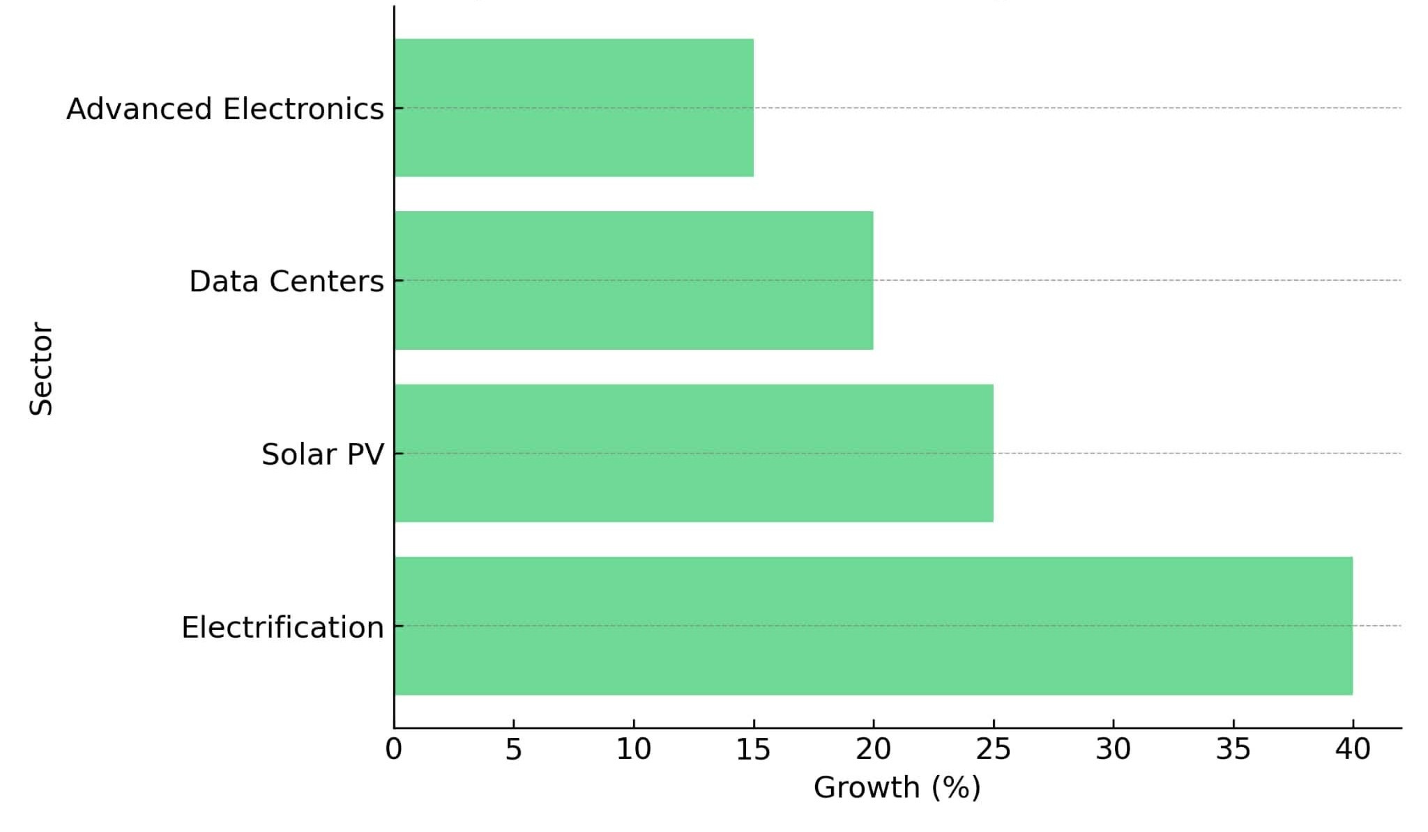 Tin's core use in solder makes it essential to current electronics manufacturing, but the structural bull case emerges from demand acceleration in electric vehicle manufacturing, solar photovoltaic installations, global data centers, and advanced electronics. Tin-based solders are essential for battery management systems and power semiconductors in electric vehicles. Solar photovoltaic installations require tin-coated copper ribbons for cell interconnection. Data centers use tin solders extensively in server boards, networking equipment, and storage arrays.