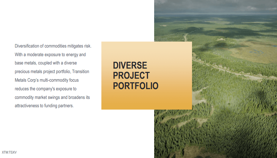 The company’s exposure to various commodities enables it to not be affected by commodity price fluctuations. The portfolio of Transition Metals Corp. consists of more than 24 projects throughout Canada which span over 6 jurisdictions.