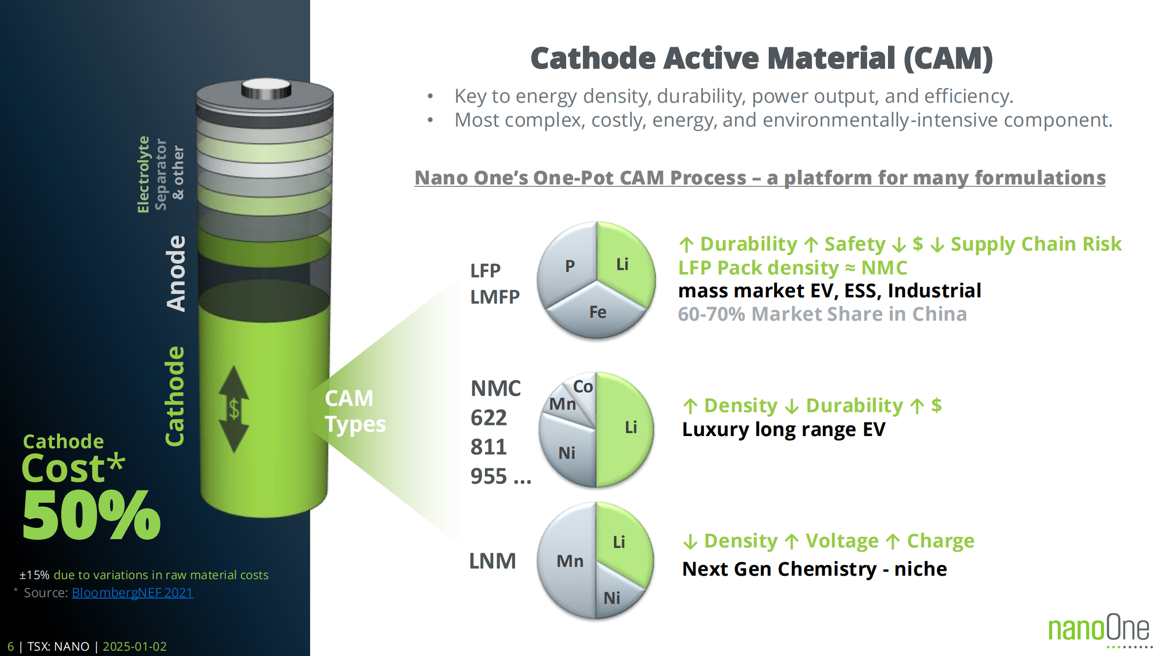 - Strategic Asset: Nano One owns proven LFP production capability with an operational plant in Quebec, positioned to capitalize on North American supply chain reshoring trends