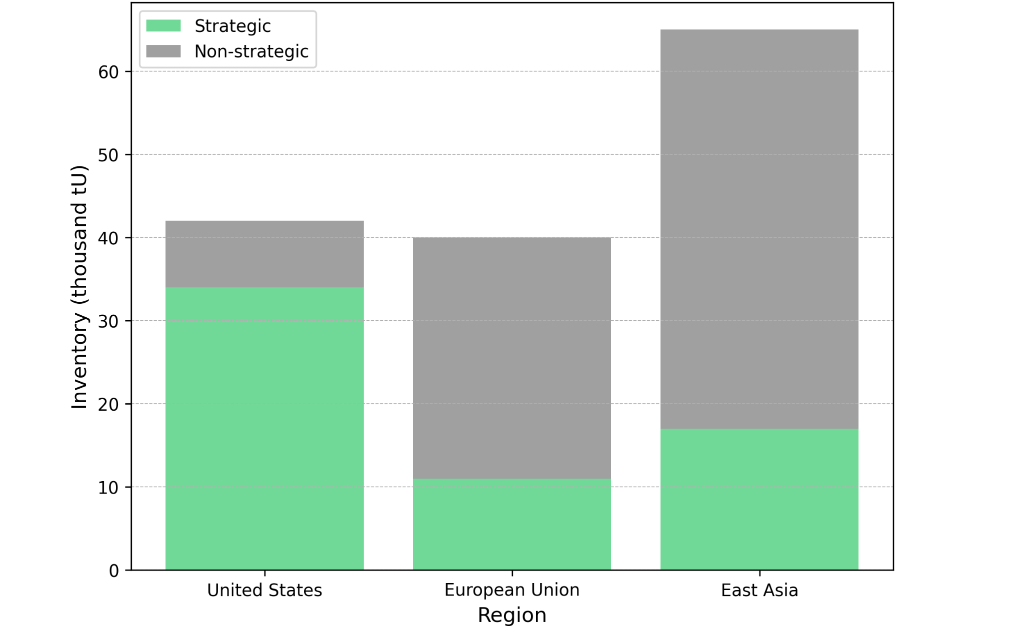The composition of inventory varies significantly by jurisdiction, with the United States maintaining a higher proportion of strategic holdings that are largely immobile, while East Asia, primarily China, accounts for a dominant share of non-strategic material. The European Union exhibits a more balanced inventory structure but remains constrained by policy and infrastructure considerations.