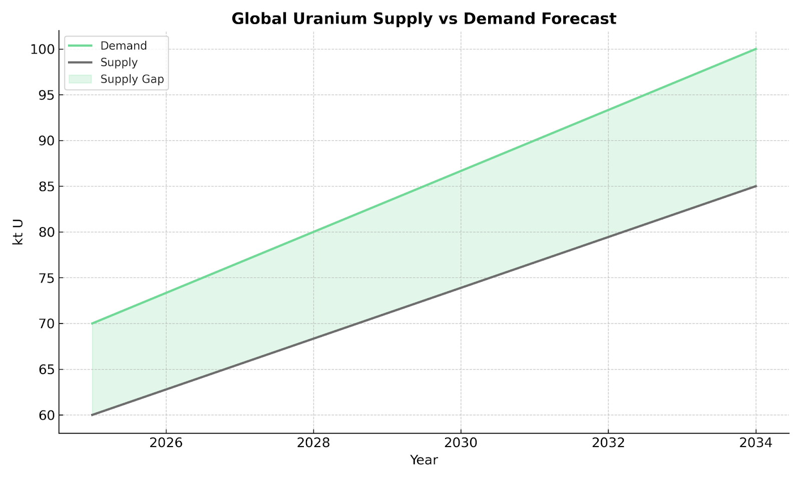 The current uranium market exhibits a significant supply deficit, with mine output failing to meet utility demand according to World Nuclear Association projections. This supply gap reflects years of underinvestment in new capacity, exacerbated by the complex challenge of bringing new supply online amid permitting lead times, capital expenditure inflation, and Environmental, Social, and Governance compliance requirements.